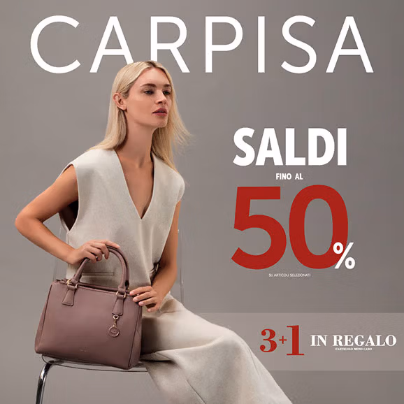 È tempo di grandi affari da Carpisa! Con i SALDI INVERNALI, tutto è a metà prezzo: borse, accessori e valigie ti aspettano per rinnovare il tuo look o accompagnarti nei tuoi prossimi viaggi. E non dimenticare la promo esclusiva 3+1: scegli 4 articoli, e quello meno caro te lo regaliamo noi! CONDIZIONI: su articoli selezionati